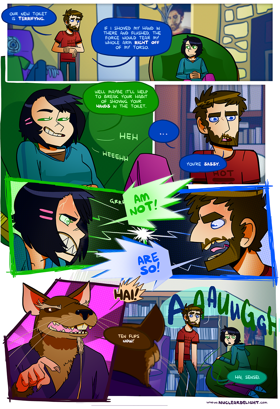 In addition, the toilet also seems to stand a few inches taller than the standard size, so it's really been messing up my sitting calibration at every other bathroom I visit. It's really throwing off my toilet-sitting game.